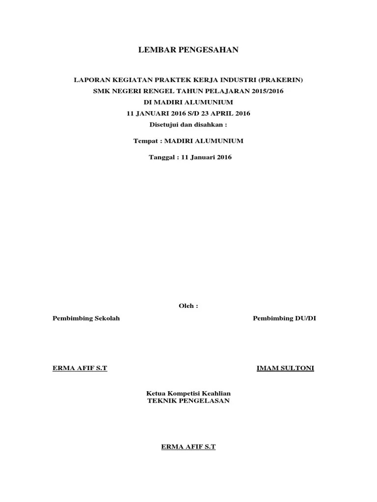 Laporan praktik kerja lapangan (pkl). Berikut ini susunan yang harus ada dalam membuat laporan pkl atau praktek kerja lapangan di antaranya adalah : Contoh halaman pengesahan dapat dilihat pada lampiran 3. Halaman berita acara pelaksanaan sidang laporan pkl (halaman iv) (khusus d1). Lembar pengesahan penguji sekolah/tempat studi;